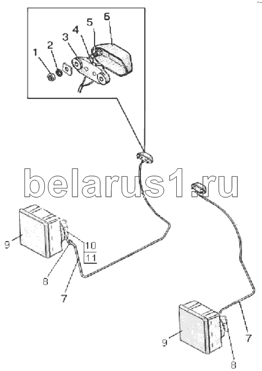 Каталог запасных частей к технике: МТЗ 892. Установка фар дорожных (950-3700020)
