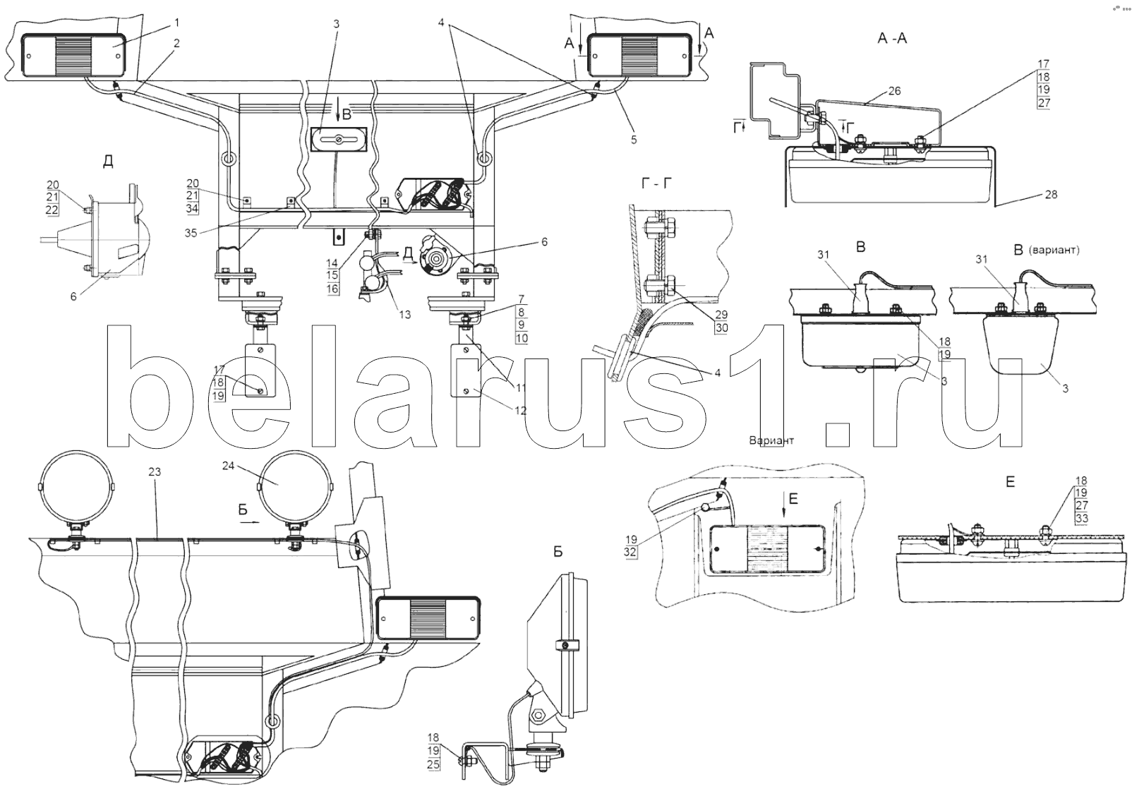 Каталог запасных частей к технике: МТЗ 892. Установка фонарей задних