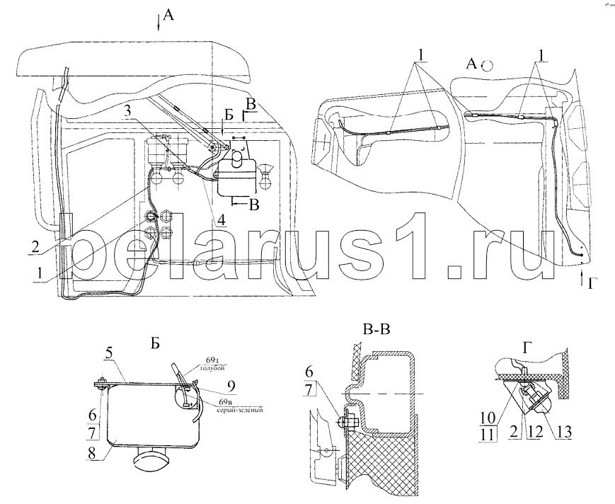Каталог запасных частей к технике: МТЗ 922.5. Установка стеклоомывателя