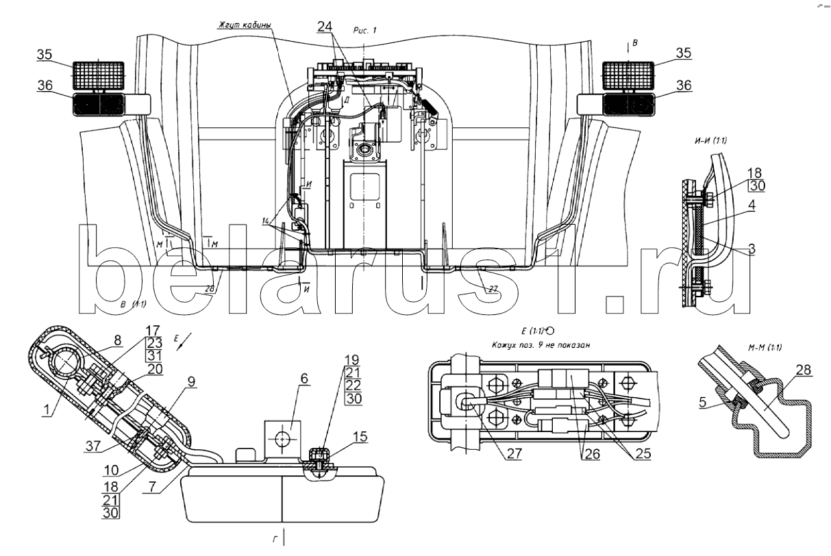 Каталог запасных частей к технике: МТЗ 923.5. Установка фонарей передних