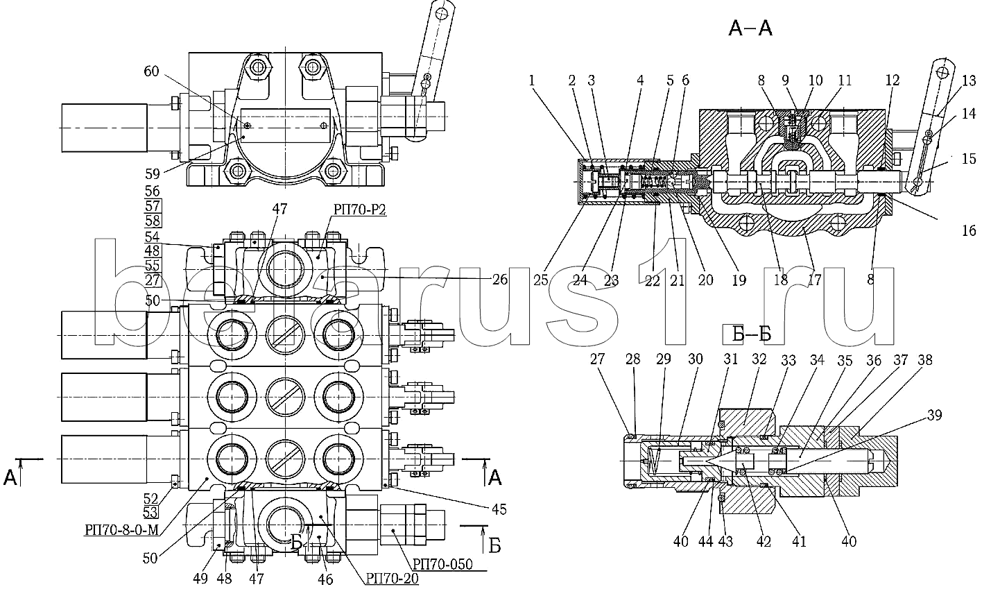 Каталог запасных частей к технике: МТЗ 92П. Гидрораспределитель РП70
