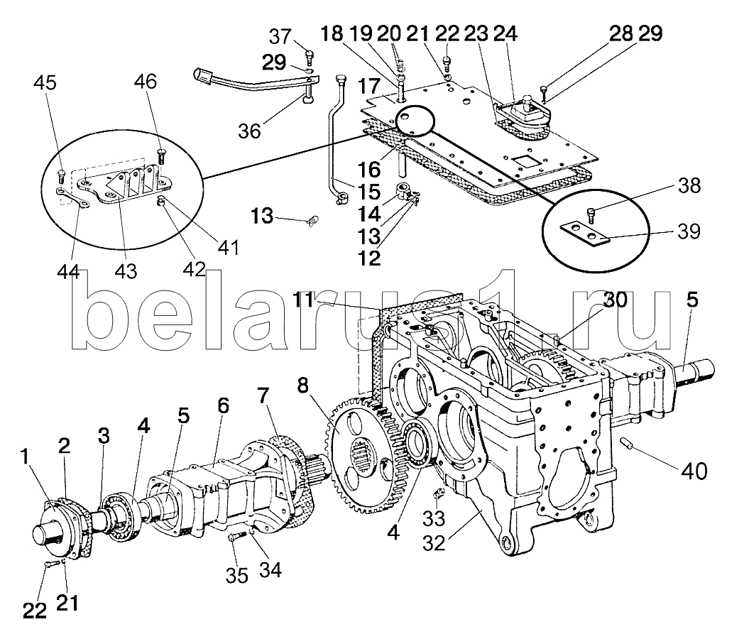 Каталог запасных частей к технике: МТЗ 92П. Корпус заднего моста. Конечная передача