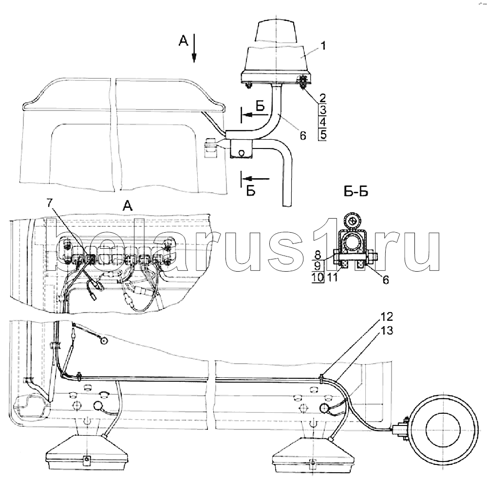 Каталог запасных частей к технике: МТЗ 92П. Установка маяка сигнального