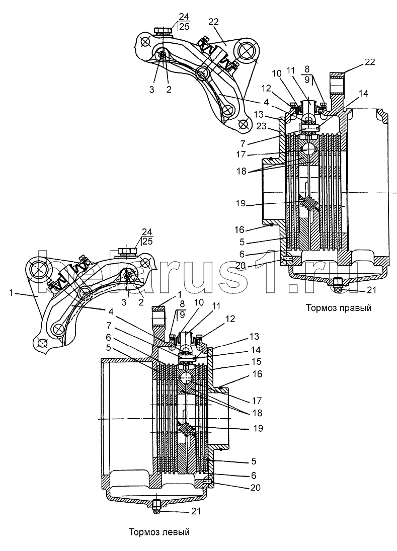 Каталог запасных частей к технике: МТЗ 952.5. Тормоза «мокрые» (левый/правый)