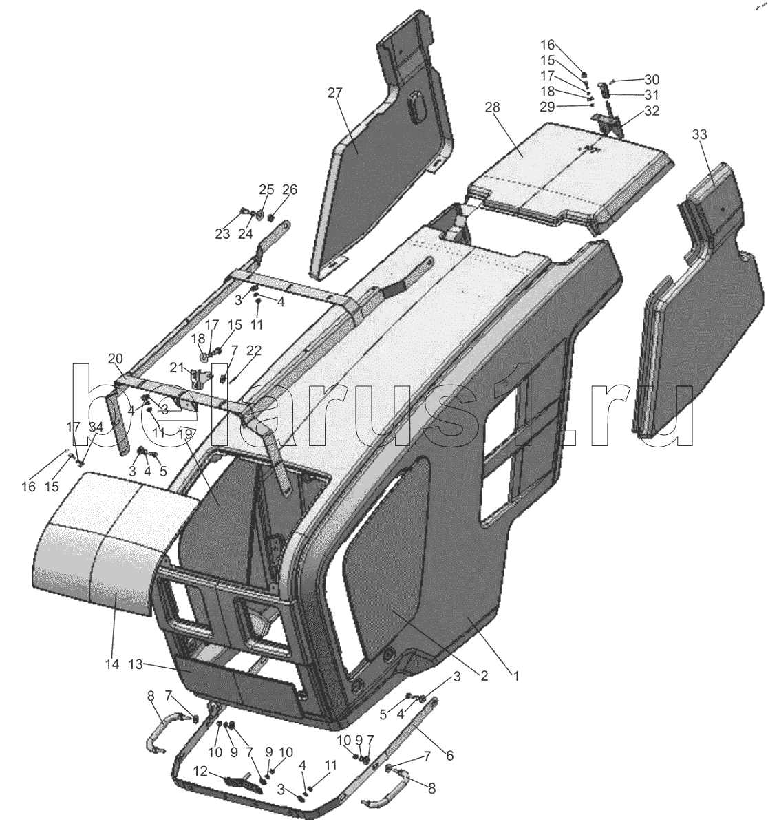 Каталог запасных частей к технике: МТЗ БЕЛАРУС 1220.7. Облицовка радиатора. Капот