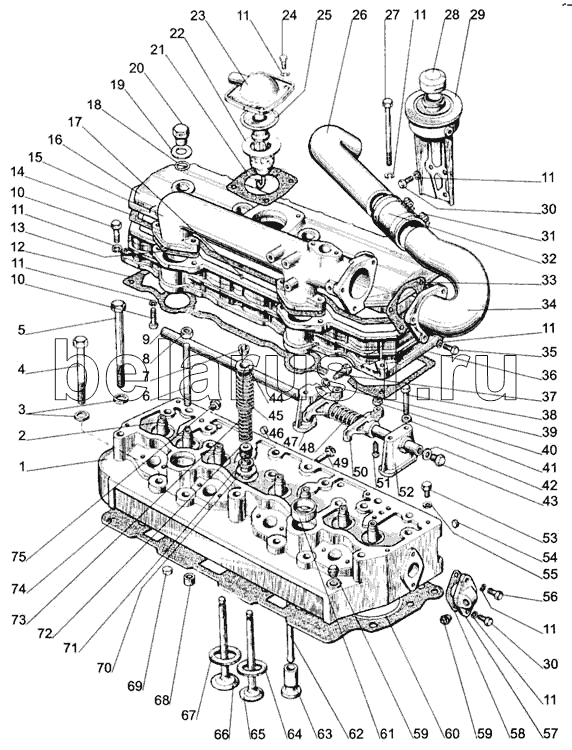 Каталог запасных частей к технике: МТЗ-1005. Головка цилиндров. Клапаны и толкатели клапанов