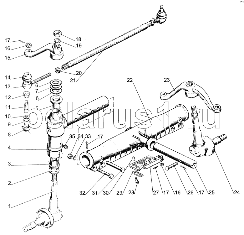 Каталог запасных частей к технике: МТЗ-1005. Передняя ось. Рулевые тяги