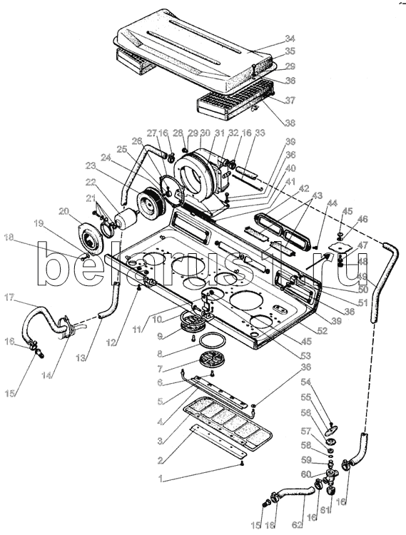 Каталог запасных частей к технике: МТЗ-1005. Установка отопителя