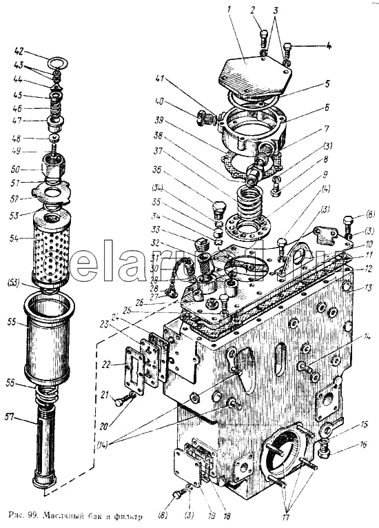 Каталог запасных частей к технике: МТЗ-100. Бак масляный и фильтр