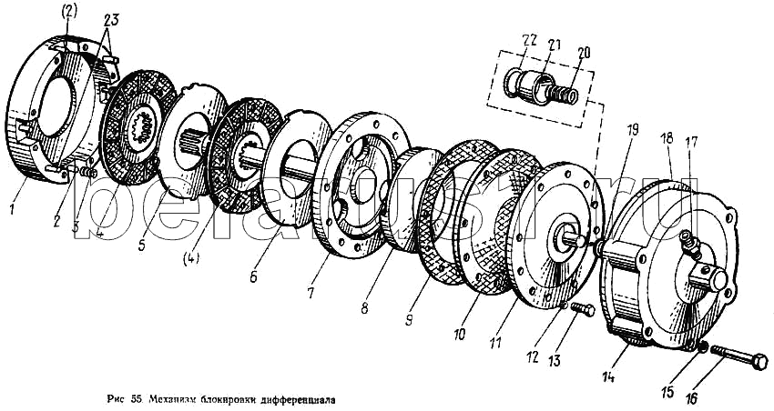 Каталог запасных частей к технике: МТЗ-100. Механизм блокировки дифференциала