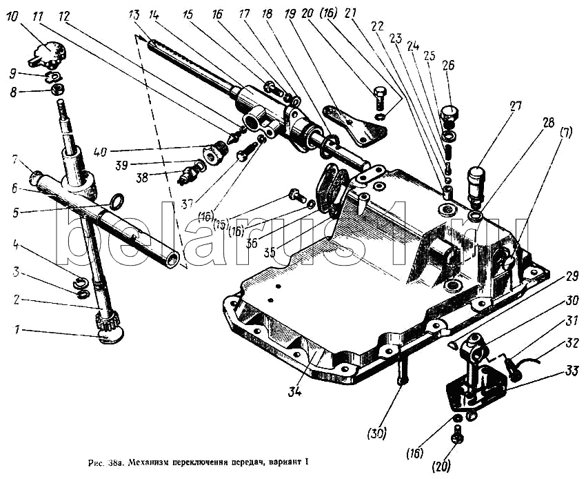 Каталог запасных частей к технике: МТЗ-100. Механизм переключения передач (вариант 1)