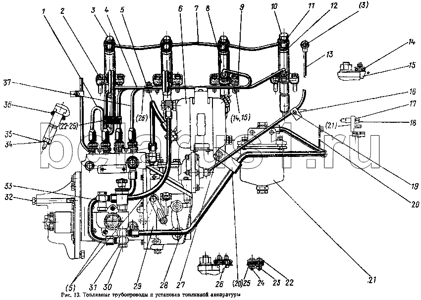 Каталог запасных частей к технике: МТЗ-100. Топливные трубопроводы и установка топливной аппаратуры