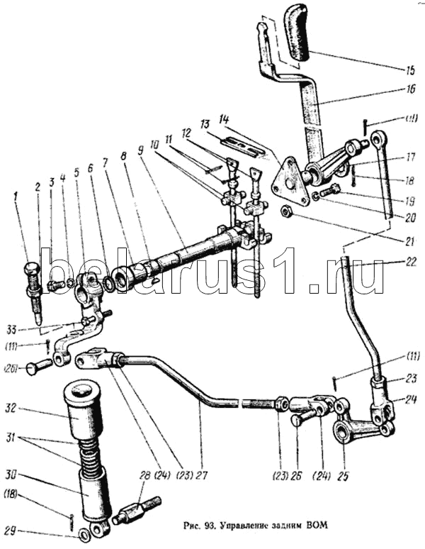 Каталог запасных частей к технике: МТЗ-100. Управление задним ВОМ