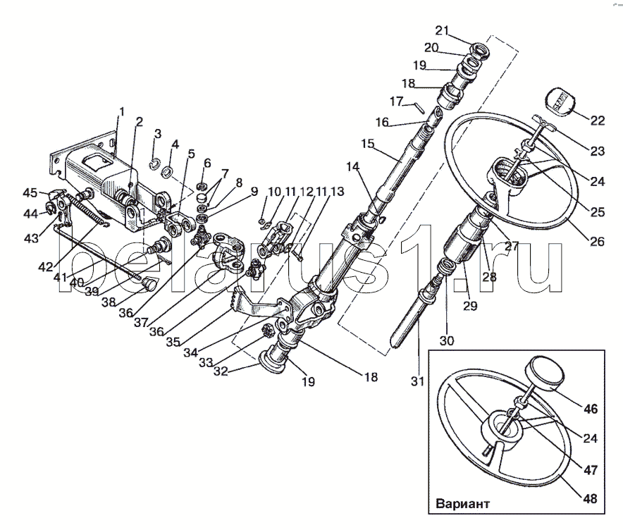 Каталог запасных частей к технике: МТЗ-1021.3. Колонка рулевая