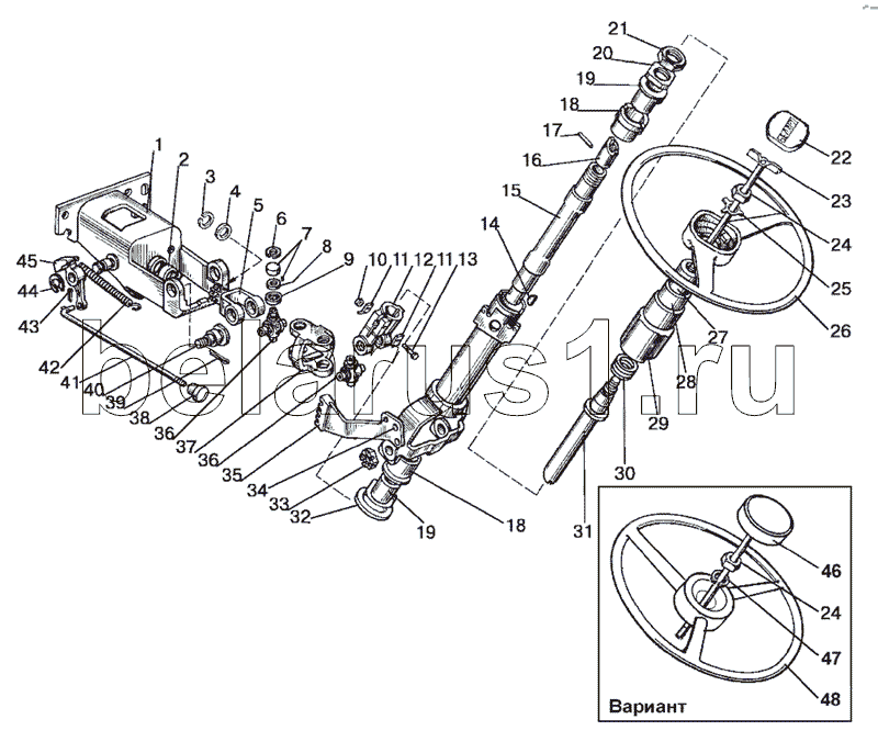 Каталог запасных частей к технике: МТЗ-1025.4. Колонка рулевая