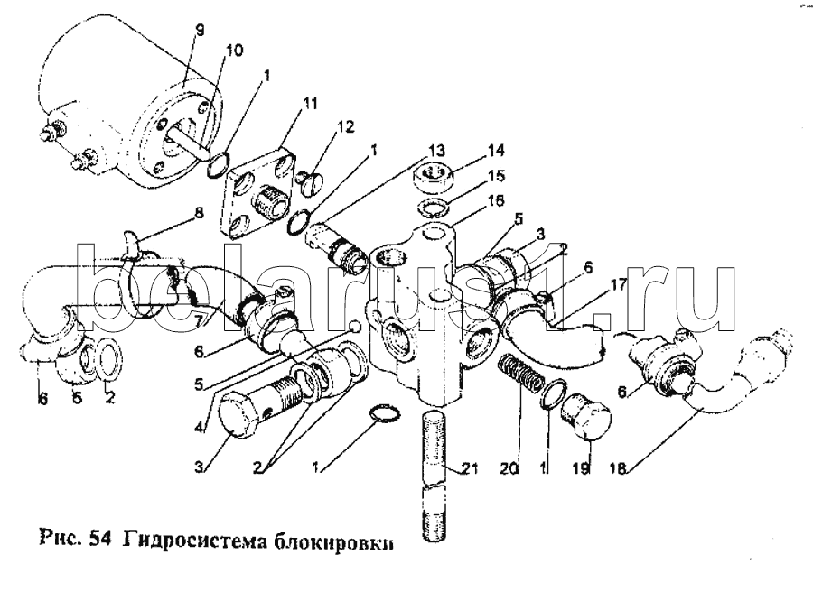 Каталог запасных частей к технике: МТЗ-1221. Гидросистема блокировки