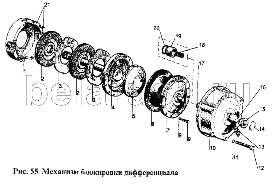 Каталог запасных частей к технике: МТЗ-1221. Механизм блокировки дифференциала
