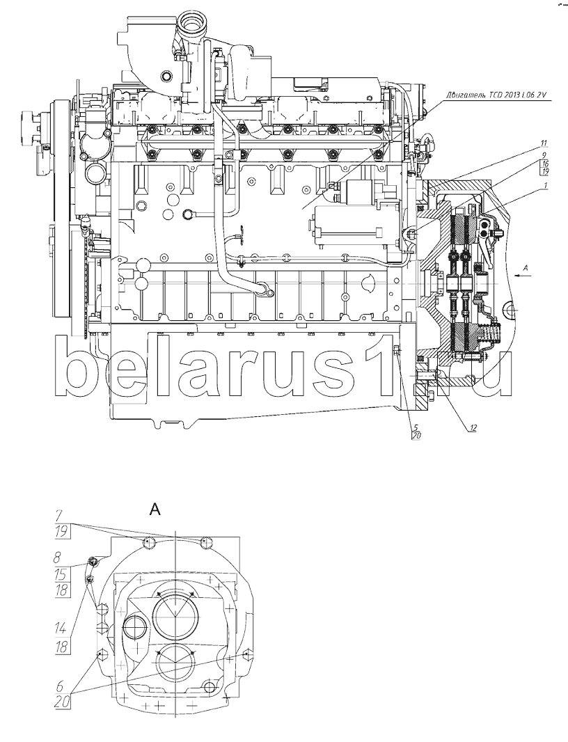 Каталог запасных частей к технике: МТЗ-1221.4. Установка двигателя