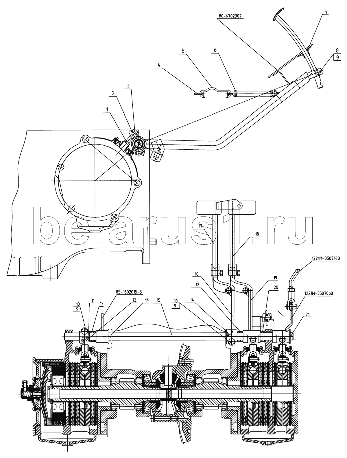 Каталог запасных частей к технике: МТЗ-1221.4. Управление «мокрыми» тормозами