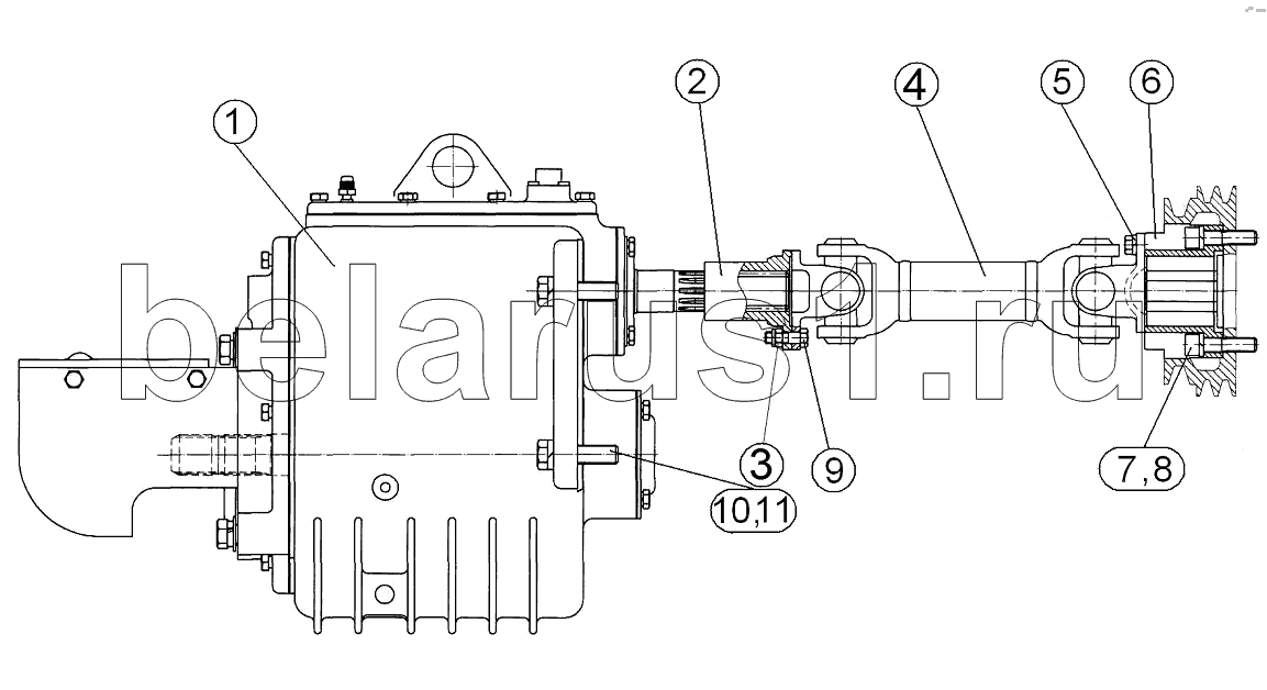 Каталог запасных частей к технике: МТЗ-1221.5. Вал отбора мощности передний