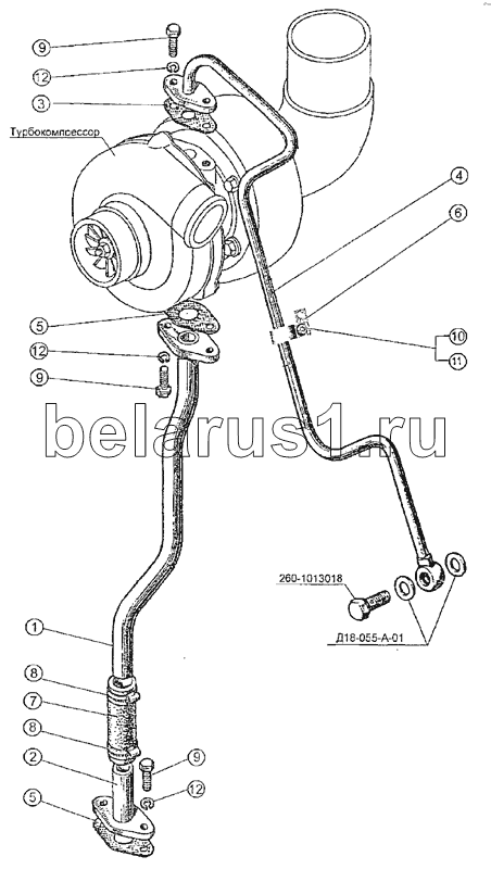 Каталог запасных частей к технике: МТЗ-1222/1523. Маслопроводы турбокомпрессора