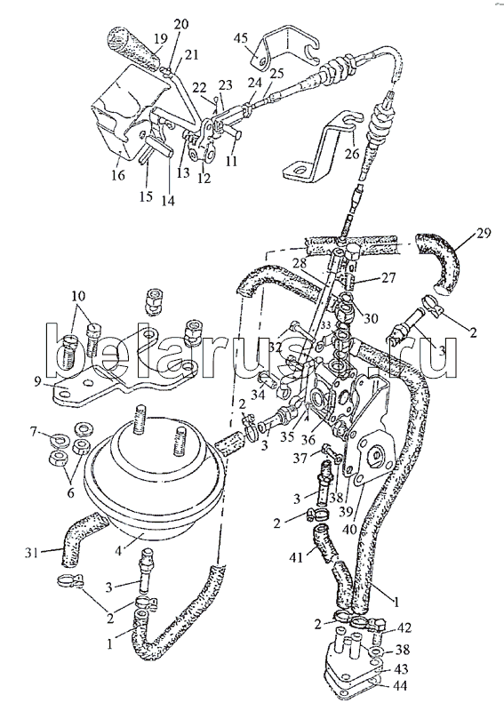 Каталог запасных частей к технике: МТЗ-1222/1523. Управление гидроприводом заднего ВОМ
