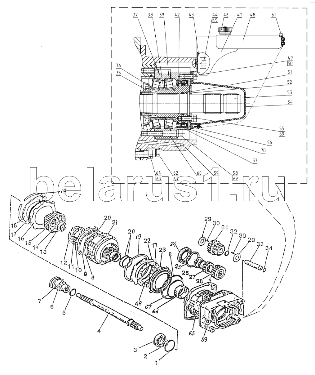 Каталог запасных частей к технике: МТЗ-1523. Вал отбора мощности
