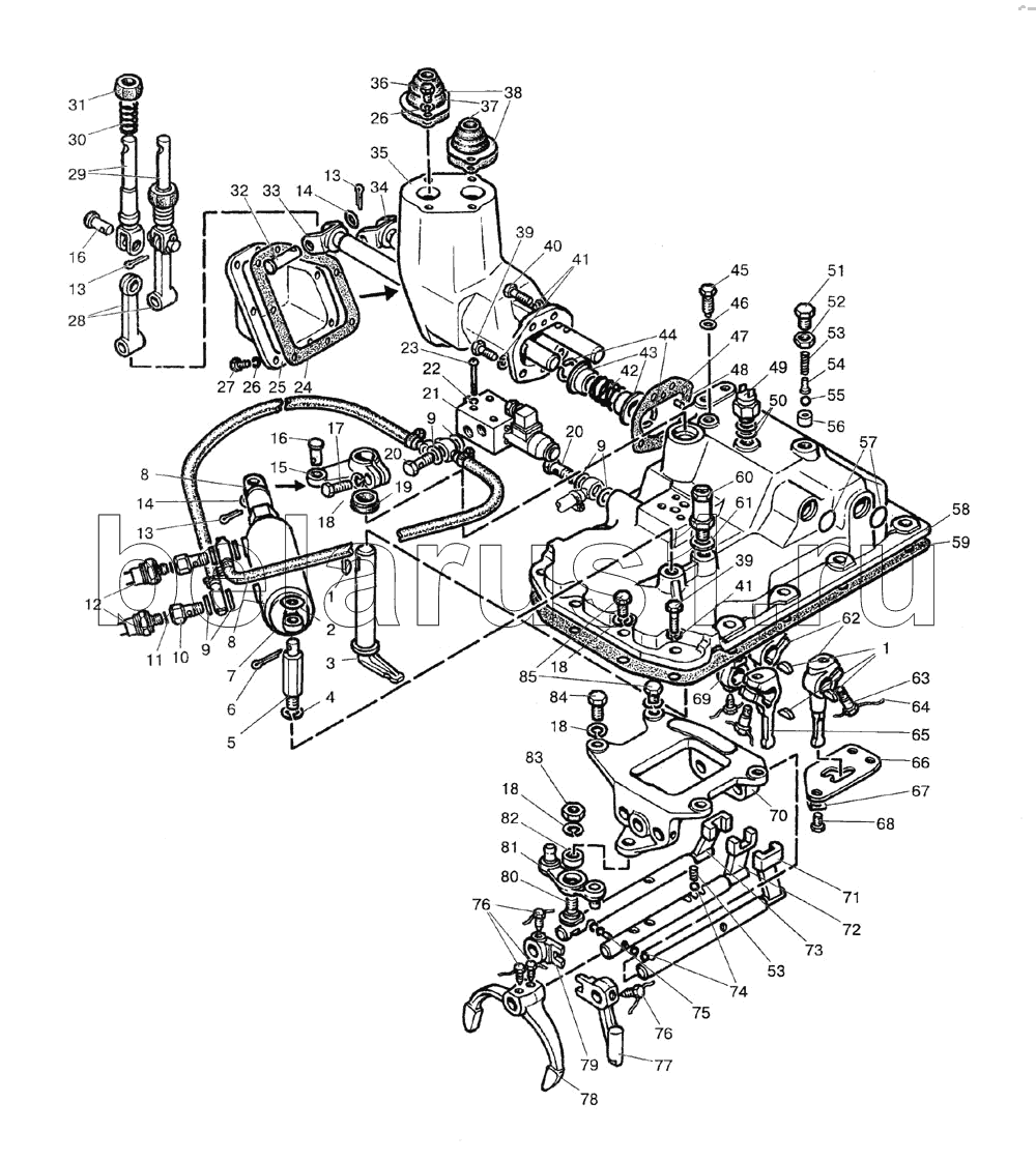 Каталог запасных частей к технике: МТЗ-1523. Механизм управления коробкой передач