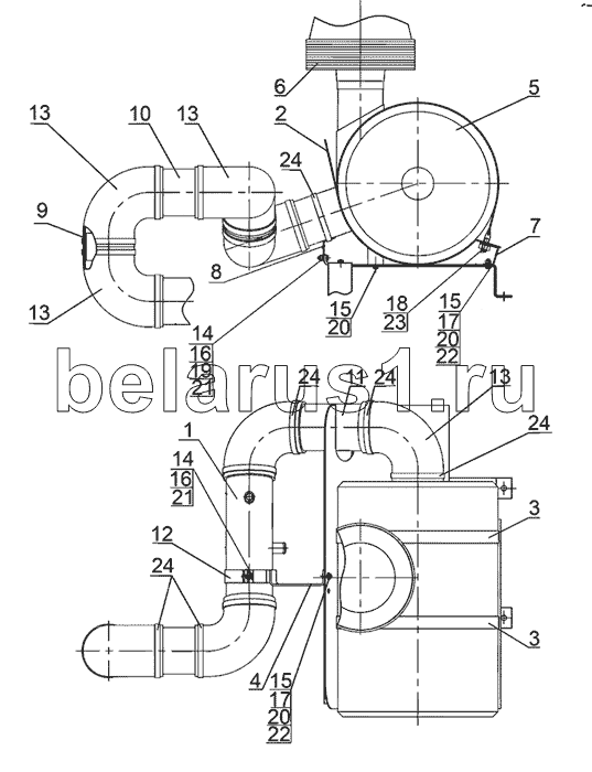 Каталог запасных частей к технике: МТЗ-1523.4. Установка воздухоочистителя
