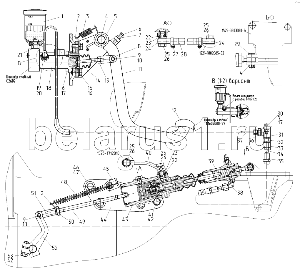 Каталог запасных частей к технике: МТЗ-1523.6. Управление сцеплением
