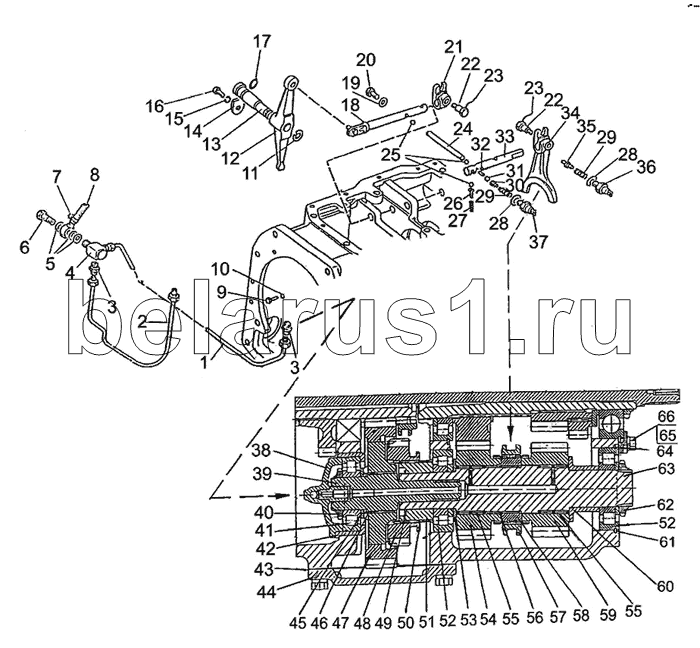 Каталог запасных частей к технике: МТЗ-2022. Вал пониженных передач и заднего хода