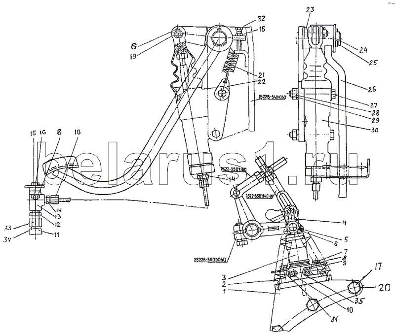 Каталог запасных частей к технике: МТЗ-2522. Управление тормозами на реверсе
