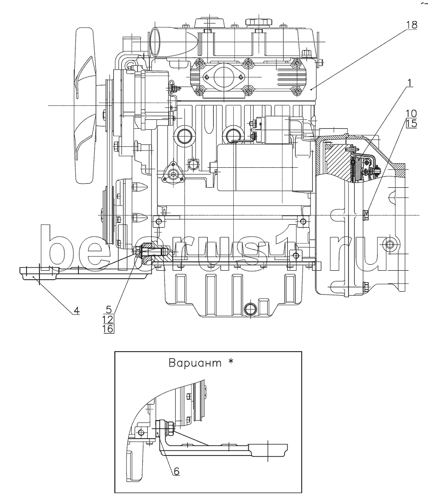 Каталог запасных частей к технике: МТЗ-310, 320, 321. Установка двигателя