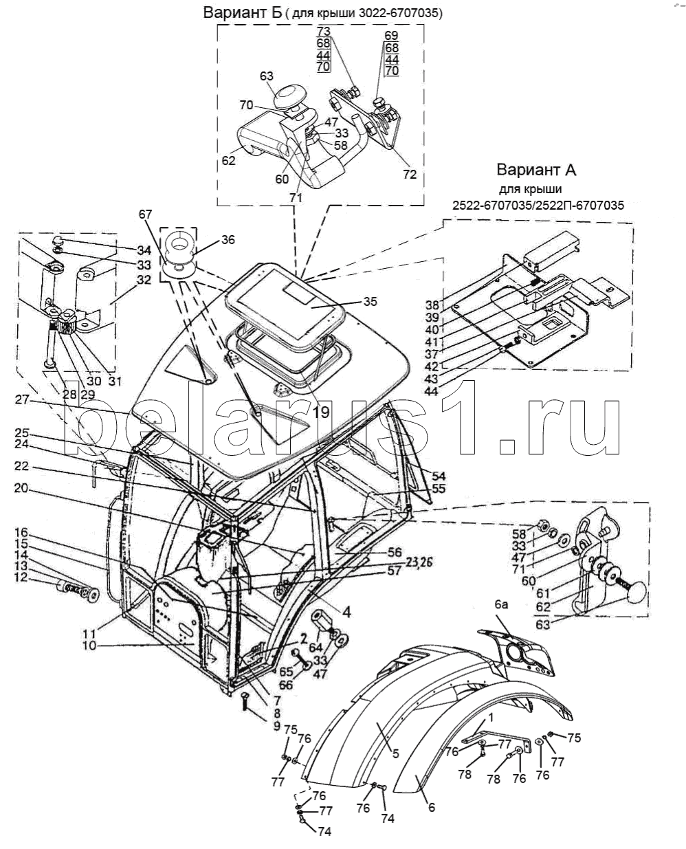Каталог запасных частей к технике: МТЗ-3522. Кабина. Крылья задние