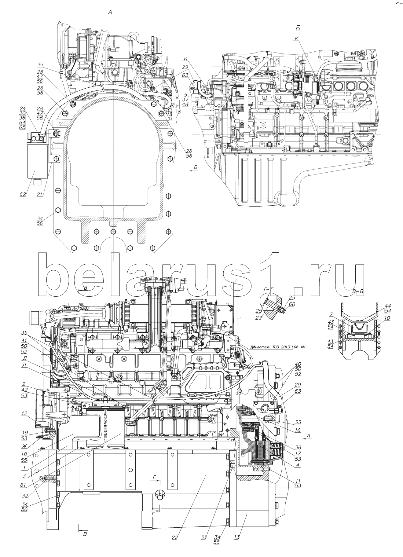 Каталог запасных частей к технике: МТЗ-3522. Установка двигателя