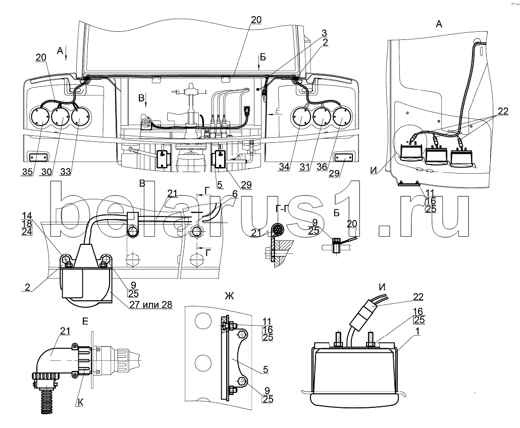Каталог запасных частей к технике: МТЗ-3522. Установка фонарей задних