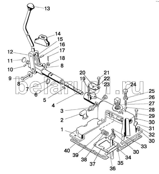 Каталог запасных частей к технике: МТЗ-570. Механизм правого однорычажного управления КП