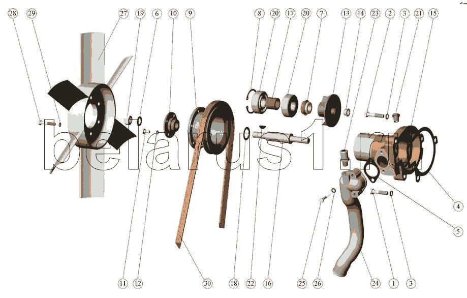 Каталог запасных частей к технике: МТЗ-570. Установка водяного насоса, установка вентилятора