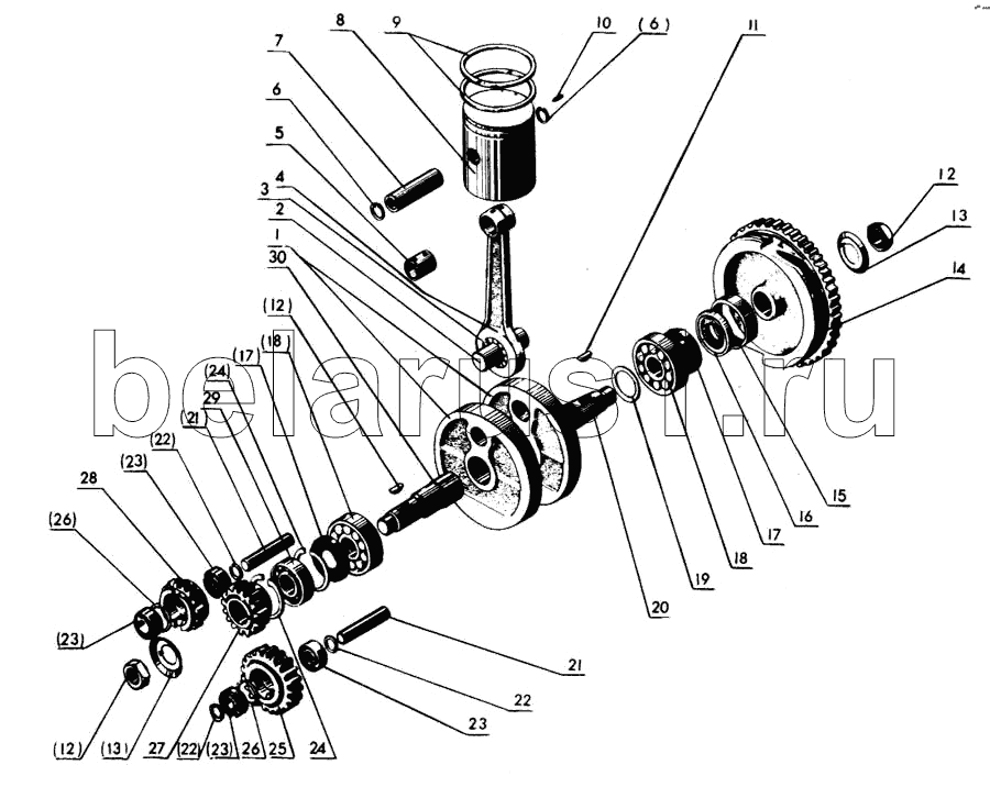 Каталог запасных частей к технике: МТЗ-80. Кривошипно-шатунный механизм
