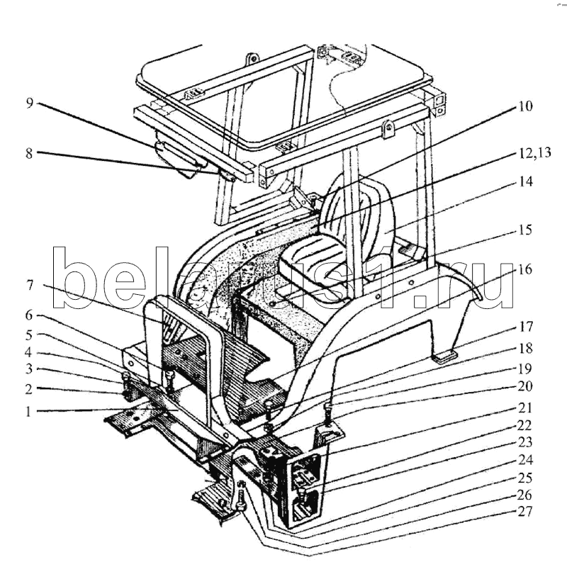 Каталог запасных частей к технике: МТЗ-90/92. Кабина (тент-каркас)