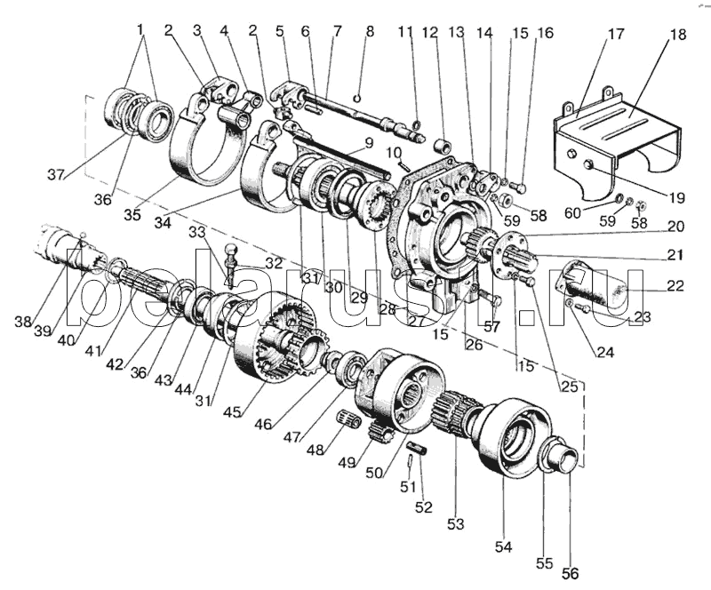 Каталог запасных частей к технике: МТЗ-90/92. Вал отбора мощности задний