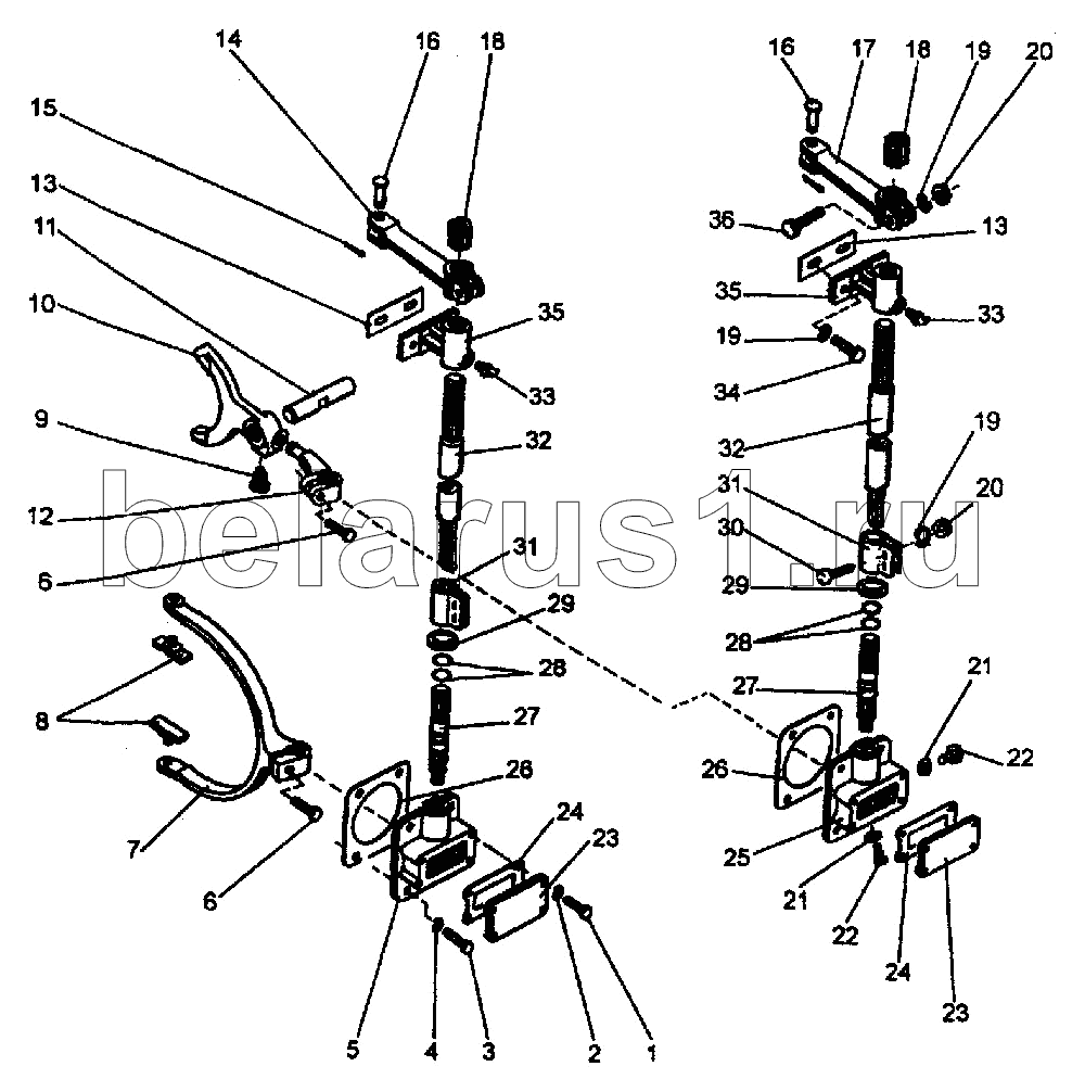Каталог запасных частей к технике: ПТЗ K-744P1. Привод управления муфтами раздаточного вала