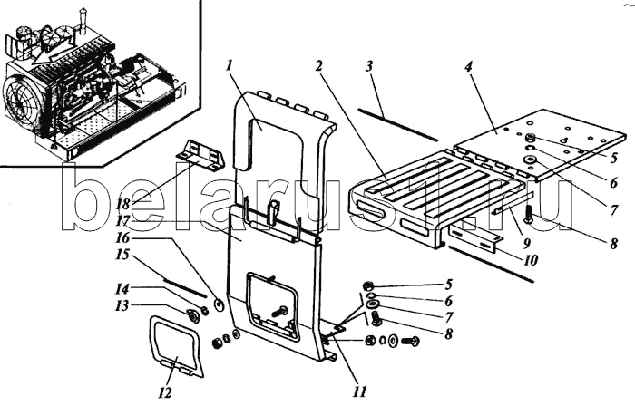 Каталог запасных частей к технике: РСМ Дон 1200Б. Капот радиатора