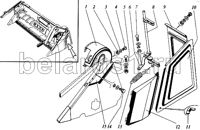 Каталог запасных частей к технике: РСМ Дон 1200Б. Щитки ограждения левой боковины жатки