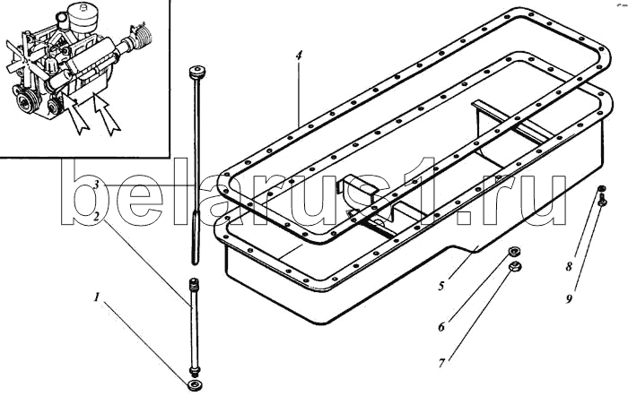 Каталог запасных частей к технике: РСМ Дон 1500Б. Поддон блока цилиндров