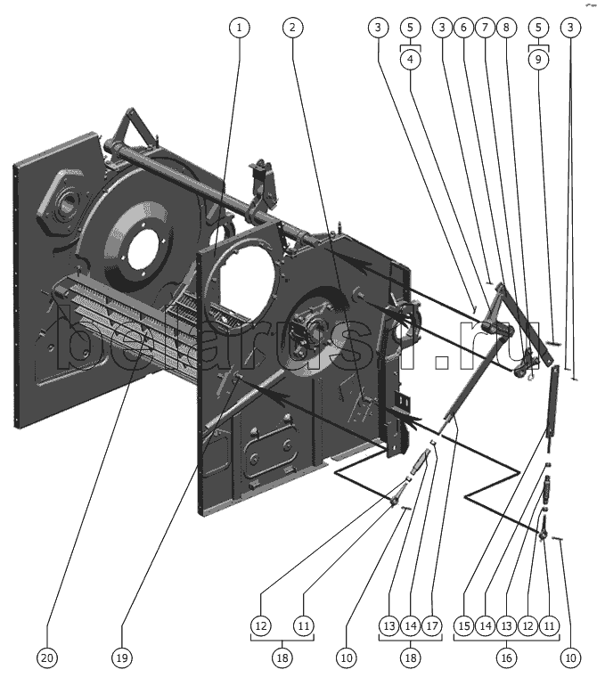 Каталог запасных частей к технике: РСМ-101 "Вектор" (вариант). Механизм подъема подбарабанья