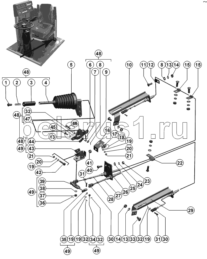Каталог запасных частей к технике: РСМ-10Б "Дон-1500Б". Рычаг стояночного тормоза
