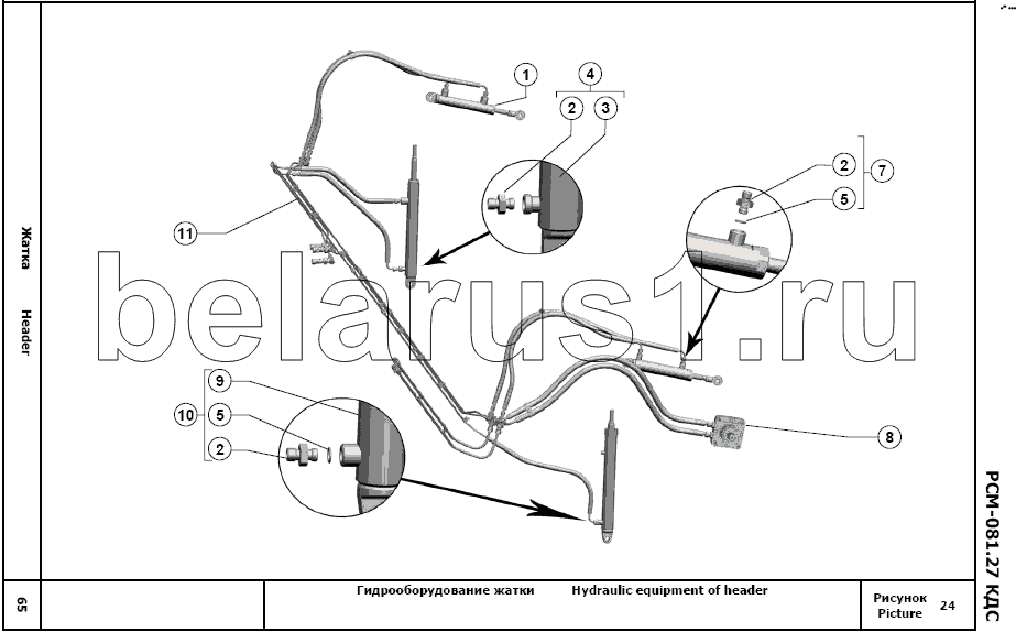 Каталог запасных частей к технике: РСМ Жатка РСМ-081.27. Гидрооборудование жатки