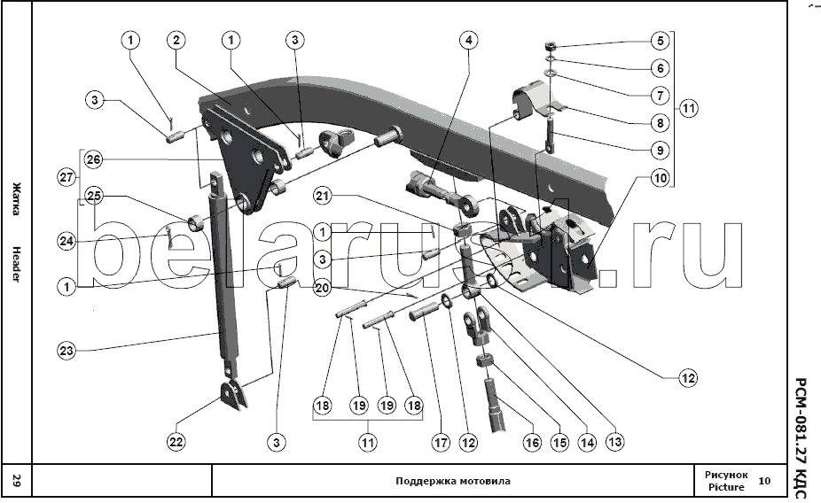 Каталог запасных частей к технике: РСМ Жатка РСМ-081.27. Поддержка мотовила