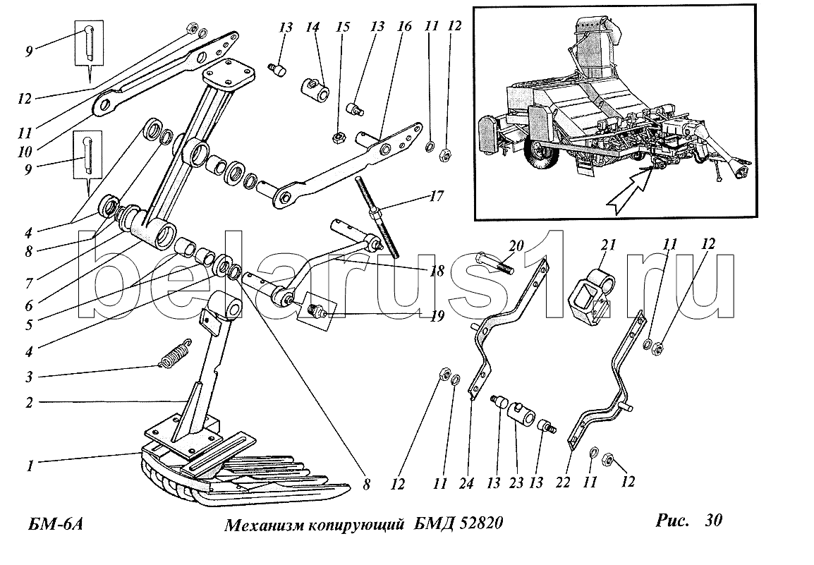 Каталог запасных частей к технике: ТеКЗ БМ-6А (2005). Механизм копирующий (БМД52820)
